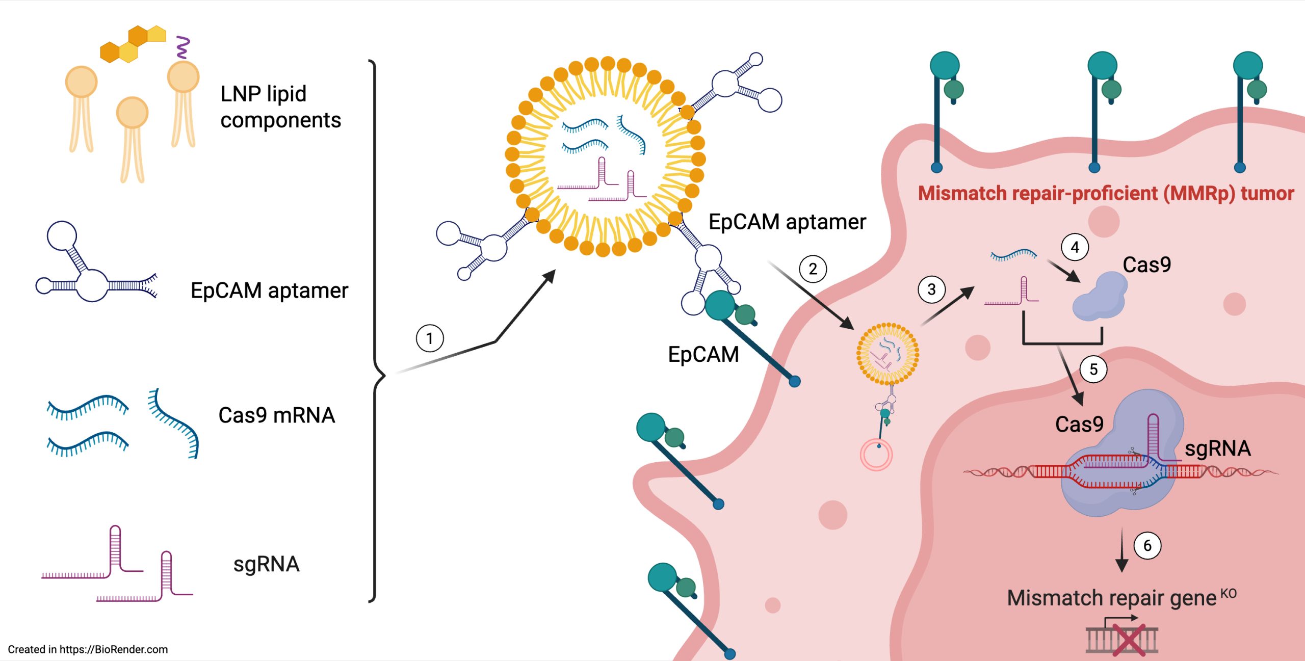 Most solid tumors exhibit limited responsiveness to immunotherapy. Patients with mismatch repair (MMR)-deficient (MMRd) colorectal cancer—characterized by absent or low expression of key DNA mismatch repair proteins such as MLH1 and MSH2—often respond to immune checkpoint blockade with complete tumor eradication. The Lieberman Lab therefore postulates that tumor-selective nanoparticle delivery of Cas9 mRNA and sgRNAs to knockout MMR genes in tumor cells could convert mismatch repair–proficient, immunotherapy-resistant solid tumors into MMRd, immunogenic tumors that could respond to immune checkpoint therapy. EpCAM is highly expressed on all epithelial cancer cells but not on normal, untransformed cells. My research project will seek to develop EpCAM-aptamer-conjugated lipid nanoparticles (LNPs) encapsulating Cas9 mRNA and sgRNAs targeting MMR genes to induce gene knockdown in vivo in epithelial cancer cells. My first goal will be to determine whether these EpCAM-aptamer-conjugated LNPs cause selective gene knockdown in vitro and in vivo. If successful, I will next evaluate the effect of knocking out MMR genes on DNA repair, microsatellite instability, chromosomal instability, and tumor growth in colorectal cancer cell lines in vitro. If these LNPs cause MMR deficiency in the tumor cell lines in vitro, I will administer them to mice implanted with MMR-proficient cancer cells to determine their effect on tumor growth, their impact on the properties of the tumor and tumor-infiltrating immune cells, and whether they augment the anti-tumor effectiveness of checkpoint inhibitor antibody therapy using anti-PD-1. I will apply techniques such as LNP transfection, flow cytometry, PCR and Western Blots for assessment of gene knockout efficiency, RiboGreen and DLS for evaluation of LNP quality, and tumor-infiltrating immune cell isolation. My project will help elucidate the mechanisms underlying why MMRd tumors respond to immune therapy and also lay the groundwork for developing a platform for tumor-selective gene editing.