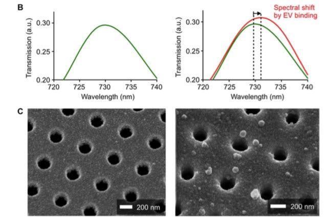 Pancreatic Ductal Adenocarcinoma (PDAC) is the most common kind of pancreatic cancer and is also the most difficult to treat. 80% of newly diagnosed patients have tumors that cannot be removed which is highly correlated to late detection of malignance [1]. In recent years, what was once thought as just cellular debris, exosomes or extracellular vesicles (EVs) are now in the spotlight because of their role in cell signaling and connection to their parent cell especially in regards to cancer [2]. EVs hold potential to be the gateway to navigating biomarkers and aid the diagnosis and prognosis of the progression of pancreatic cancer. Tumor derived extracellular vesicles(tEVs) have characteristics of the original tumor, which include nucleic acids, proteins, enzymes and lipids. The Nano-plasmonic exosome (nPLEX) assay technology profiles EVs without a label which has taken surface plasmon resonance (SPR) to a new level. In this project, the nPLEX is being used to analyze tEVs of PDAC patients. The nPLEX is composed of two major parts. The chip is engineered with nanohole arrays made in a thin gold film which are coated with five antibodies linked to PDAC. The nPLEX measures refractive index changes from light transmission through the nanoholes of the chips. It measures the shift in wavelength of transmitted light when tEVs are captured on the nanohole surface of the gold [2]. With the specificity of the chip and its affinity for certain biomarkers, the nPLEX was able to identify the protein contents of the tEVs being secreted by the tumor [3]. The goal of the project is to apply the nPLEX technology to detect and analyze tEVs in plasma samples of patients with PDAC. The complexity and difficult identification of pancreatic cancer is a continued hurdle for novel technologies such as these. But this does bring a fresh new alternative, faster and less invasive than a biopsy and allows for EVs to be used as a tool for cancer diagnosis and monitoring treatment response. 1. Castro, C. M., Im, H., Le, C., Lee, H., Weissleder, R., & Birrer, M. J. (2015). Exploring alternative ovarian cancer biomarkers using innovative nanotechnology strategies. Cancer Metastasis Reviews, 34(1), 75–82. http://doi.org/10.1007/s10555-014-9546-9 2. Im, H., Shao, H., Park, Y. I., Peterson, V. M., Castro, C. M., Weissleder, R., & Lee, H. (2014). Label-free detection and molecular profiling of exosomes with a nano-plasmonic sensor. Nature Biotechnology, 32(5), 490–495. http://doi.org/10.1038/nbt.2886 3. K. S. Yang, H. Im, S. Hong, I. Pergolini, A. F. del Castillo, R. Wang, S. Clardy, C.-H. Huang, C. Pille, S. Ferrone, R. Yang, C. M. Castro, H. Lee, C. F. del Castillo, R. Weissleder, Multiparametric plasma EV profiling facilitates diagnosis of pancreatic malignancy. Sci. Transl. Med. 9, eaal3226 (2017).