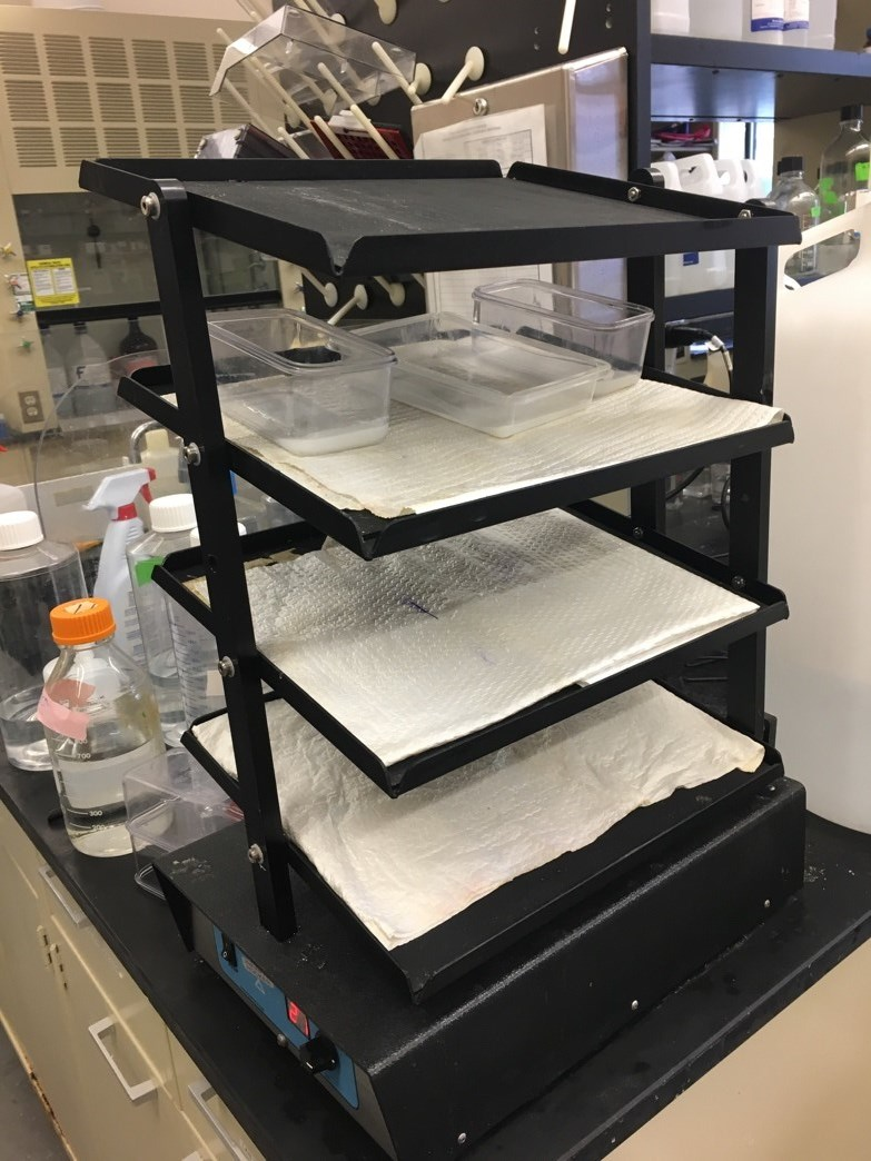 In this image, I am immunoblotting with p130, E2F4, and E2F1 antibodies. I incubated the primary antibodies overnight, and washed each nitrocellulose membrane with TBST the following morning. I visualized the antibody binding by using secondary antibody conjugated to Horse Radish Peroxidase and measured chemiluminescence. This experiment can tell me relative amounts of p130, E2F4, and E2F1 in different experimental conditions.