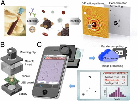 Much of the developing world currently has limited availability of pathology services resulting in numerous cases of undetected and untreated diseases that, if caught earlier on in their progression, would be much easier and less expensive to treat. A group of researchers at the Center for Systems Biology at Massachusetts General Hospital has developed a device called the D3 (digital diffraction diagnostic) system that can be used to diagnose various physiological conditions including lymphoma, cervical cancer, and HPV in point-of-care settings using a smartphone. This device, which attaches itself to the lens of a smartphone, consists of a battery-powered LED light, circuit board, sample insert, pinhole, and mounting clip and utilizes the smartphone camera to take an image of a manually-inserted blood or tissue sample. Before the image is taken, the sample is labeled using microbeads coated with ligands (e.g. antibodies or nucleotides) that bind to specific biomarkers indicative of cancer or HPV. In order to detect lymphoma, cells from a fine-needle aspirate (FNA) of a lymph node are captured by primary antibody CD20 coated on a glass coverslip, then microbeads coated with either kappa or lambda antibody are added to bind to the cells and interrogate their polarization. A similar process is carried out for diagnosing HPV. However, the viral DNA is targeted by microbeads rather than the cancer cells containing the CD20 antigen. Once the image is taken, it is uploaded via a secure, encrypted cloud network to a database at MGH where the image is analyzed using an algorithm that detects the presence of cancer or HPV by identifying the unique diffraction patterns of the bound beads as well as their proximity to the analyte of interest. Based on the number of microbeads bound to target cells, a patient can be quickly, inexpensively, and accurately diagnosed. The D3 device has detected the presence of tumor proteins in cancer cell lines as accurately as the gold standard of microscopy and flow cytometry and allows for an analysis of up to 100,000 cells at a time. The goal of this project is to refine and optimize the D3 assay in order to create an efficient diagnostic device capable of revolutionizing pathology services related to cancer and other diseases in developing countries.