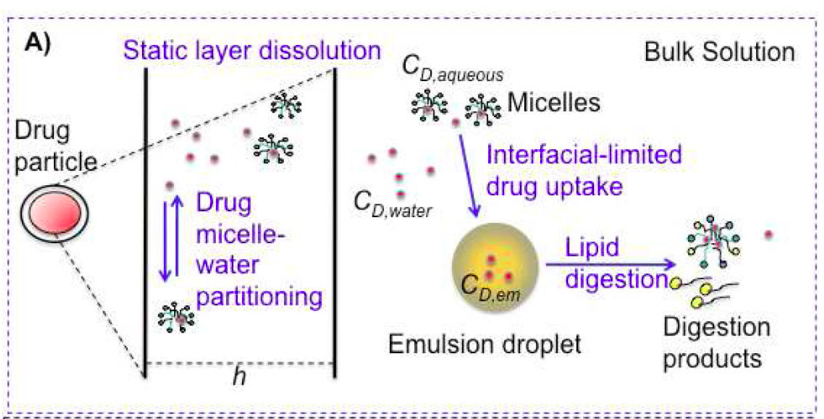 Today many oral drugs, including oral chemotherapeutics, have poor water solubility and poor drug absorption. Studies have shown that when taken in the presence of lipid-containing food, or with a lipid-based drug delivery system, drug dosages can sometimes be decreased significantly, thus alleviating possible side effects. Orally dosed lipids form nanoemulsions in the GI tract, which alter drug dissolution, solubility, and absorption. To date, however, the effect of lipid nanoemulsions on overall oral drug absorption is not quantitatively predictable, making the development of lipid based drug formulations an experimentally and financially exhaustive process. The Carrier lab is conducting mechanistic studies and developing a mathematical model that predicts the impact of lipid nanoemulsions on overall drug absorption. Given the significance and particularly harsh side effects of oral chemotherapeutics, this study will be evaluating the impact of lipid nanoemulsions on oral delivery of Lapatinib. Lapatinib is a chemotherapeutic drug used in the treatment of advanced stages of breast cancer that is known to have improved bioavailability when taken with a high fat meal, yet is dosed in the fasted state. As a conclusion of this study we will utilize experimental results from studying lapatinib in vitro together with modeling to predict the impact of orally dosed nanoemulsions on lapatinib absorption. Drug solubility and dissolution experiments will be performed in vitro in simulated gastric and intestinal fluids, and with concurrent digestion of lipids. The extent of lipid digestion, drug solubility and dissolution will be analyzed using high performance liquid chromatograph (HPLC) and an emitted light scattering detector (ELSD). Human cancerous colon cells (Caco-2 cells) will be used to study the impact of lipid nanoemulsions on intestinal permeation of Lapatinib.